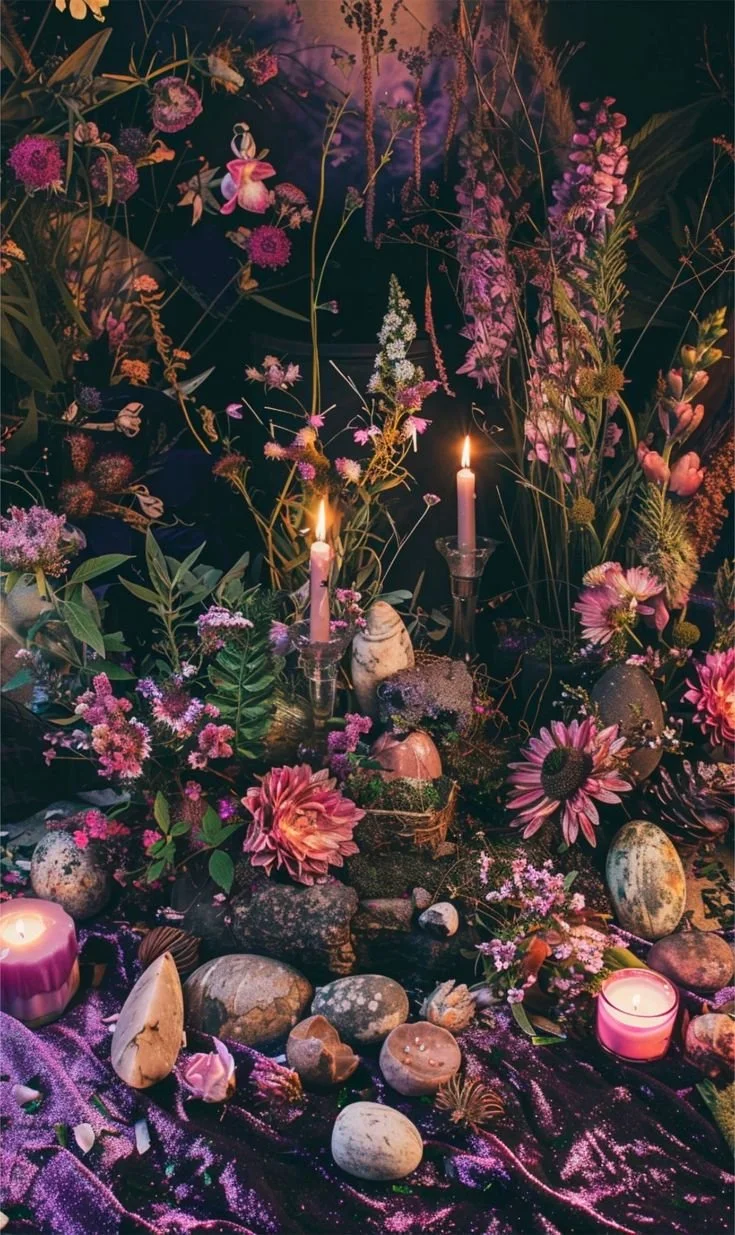 Sometimes, the altar shows up as a physical space you tend, something you build with what you’ve got: shells, bones, petals, stones, candles, copper, and things your ancestors might side-eye. Other times, it’s just the way you vocalize your yawn in the morning and say okay, let’s try again. Either way, you’re doing it on purpose.